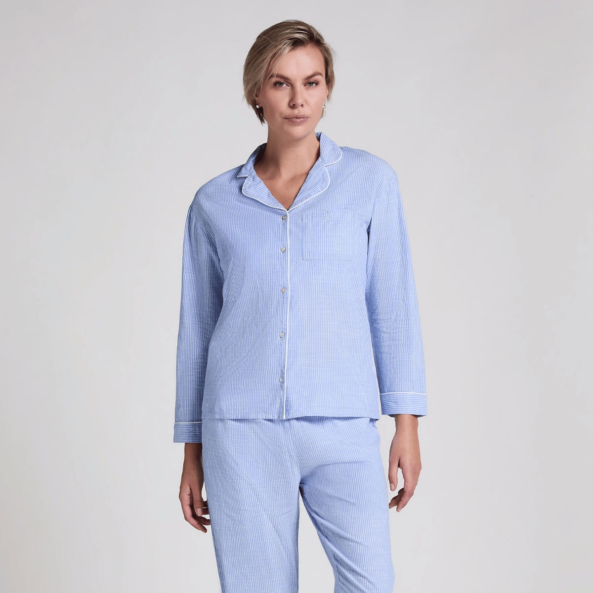 Hunkemöller Cotton Stripe natskjorte, blå